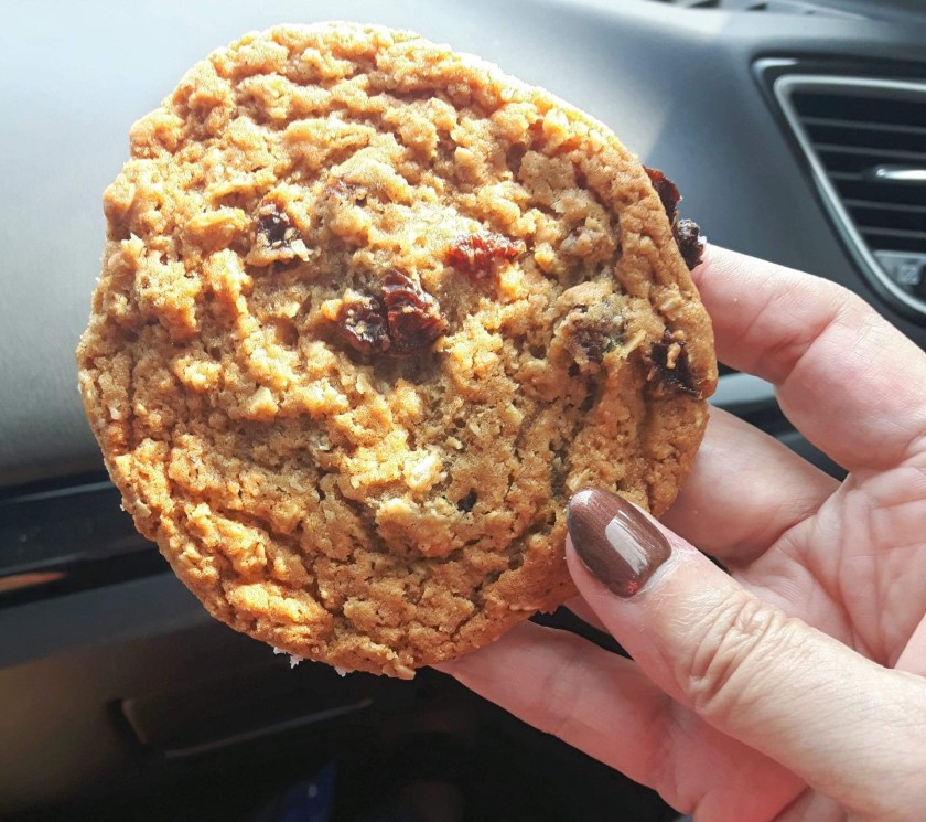 Well it actually turns out that there have been very few cooked raisins for anyone in our family. You can pretty well say it has been a raisin free environment. Thank God(truly) for cranberries. Life has been tolerable. I must admit though it has made me a bit of a raisin warrior. Today, while travelling, we stopped at Timâs for a coffee and donuts treat. There in the case before me I spied the most amazing oatmeal cookies with raisin deliciousness.